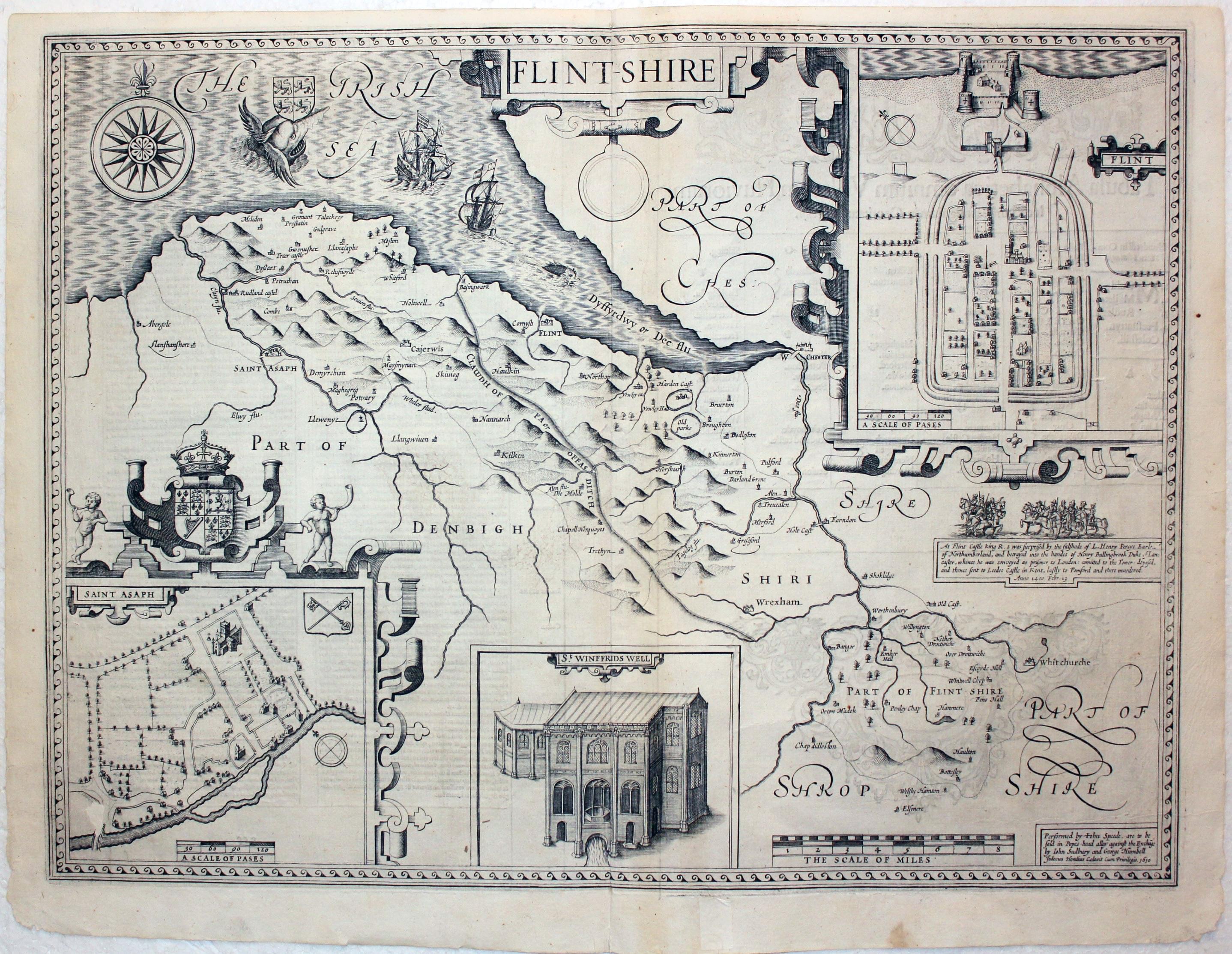 Map of Flintshire by John Speed c.1710 with later hand colouring