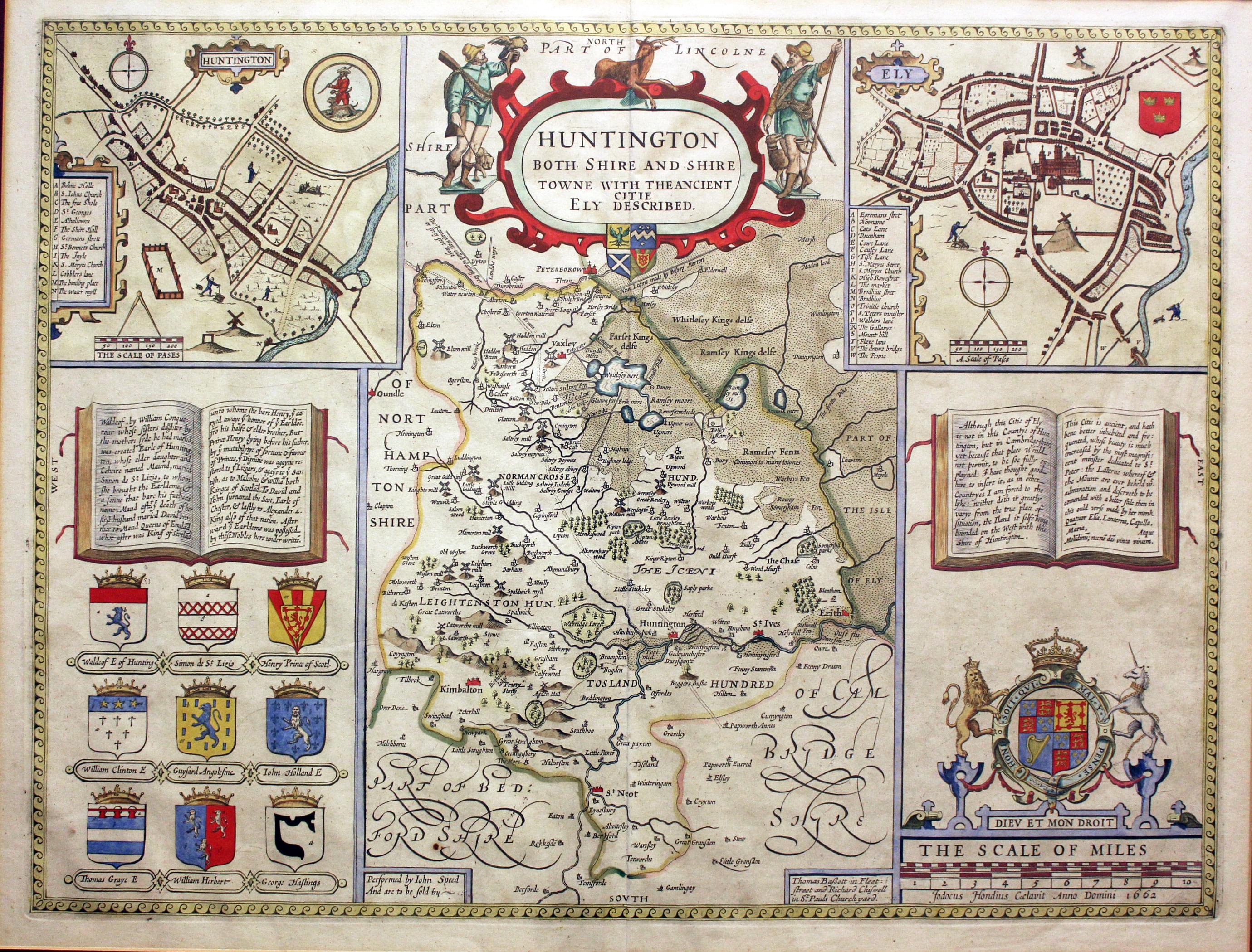 He first devoted himself to writing a history and preparing a series of county maps of England and Wales. Between 1605 and 1610 he collected material including manuscript maps, coats of arms, portraits, drawings of antiquaries and rubbings of coins which he passed onto Jodocus Hondius in Amsterdam who engraved most of the maps for the Theatre of the Empire of Great Britain. During this time Speed must have travelled extensively in the British Isles acquiring information for his unique series of town plans that appear on his maps, which are the earliest recorded plans for many of the towns featured, Proofs of his maps were issued between 1608 and 1610 and in 1611-12 all 67 maps were published in atlas form under the title The Theatre of the Empire of Great Britain.