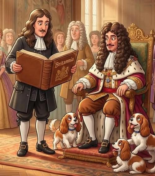 John Ogilby was born in Kellemeune, ten miles north of Dundee in 1600. The publishing of Britannia, his road atlas of England and Wales in 1675 was a crowning success to an energetic, eventful and varied life. He came from a good family his education was not completed. His father, a member of the Merchant Taylors Company wasted his estate and was sent to prison for debt. John then aged about twelve supported his mother and himself by selling trinkets. John bought one or more lottery tickets at 2s.6d. each from the Virginia Company and he won one of the minor prizes and was able to pay his father's debts. Later John purchased an apprenticeship with a dancing master, John Draper of Gray's Inn Lane. He did well, having a natural talent for dancing and perhaps with the earnings from the illegal practice of apprentices giving lessons he was able to buy himself an early completion of his apprenticeship and set up a dancing school of his own. His continuing success and reputation brought important and influential pupils from far and wide.