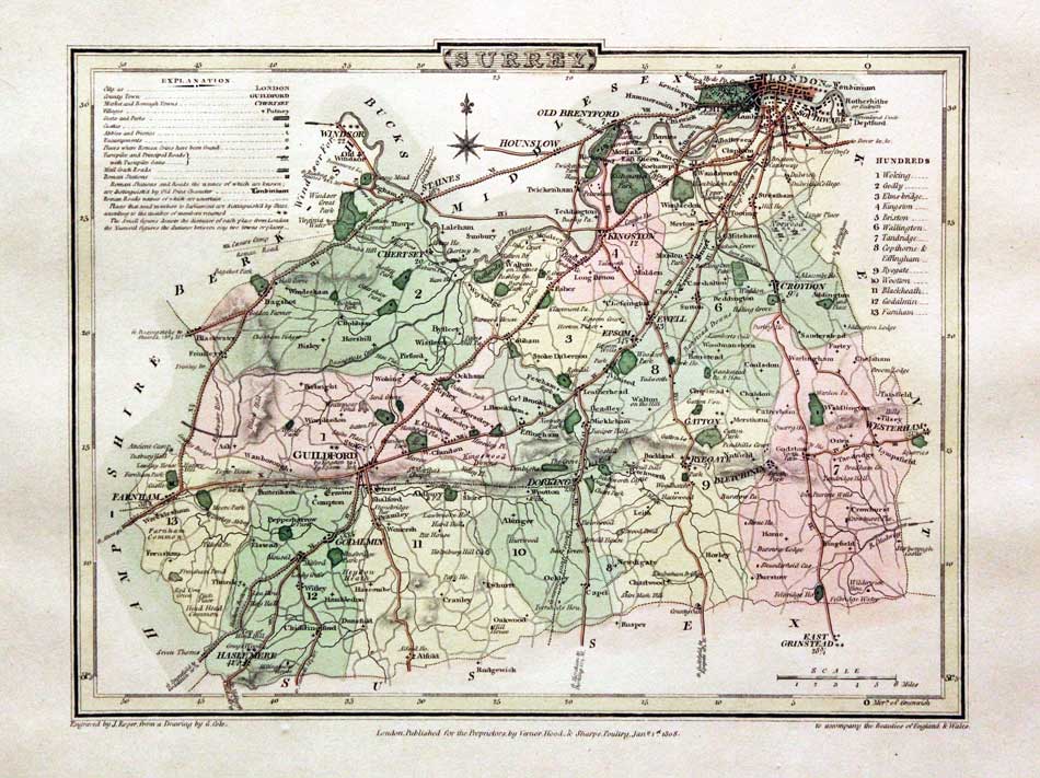 The names of Cole and Roper just seem to go together for collectors of British county maps. George Cole was the cartopgrapher and artist and John Roper the engraver. They collaborated to produce The British Atlas published in 1810. You maybe a little confused by the date a reputable map dealer will put on the maps as most of the maps bear a date earlier from 1804 to 1809 beneath together with the imprint of the publishers Vernor, Hood and Sharp. This is because the maps were prepared for Britton and Brayley's 'The Beauties of England and Wales' which was published in seperate parts and published over a period of years. You are not going to be able to determine which work your map came from as the publishers imprint on each map is identical.