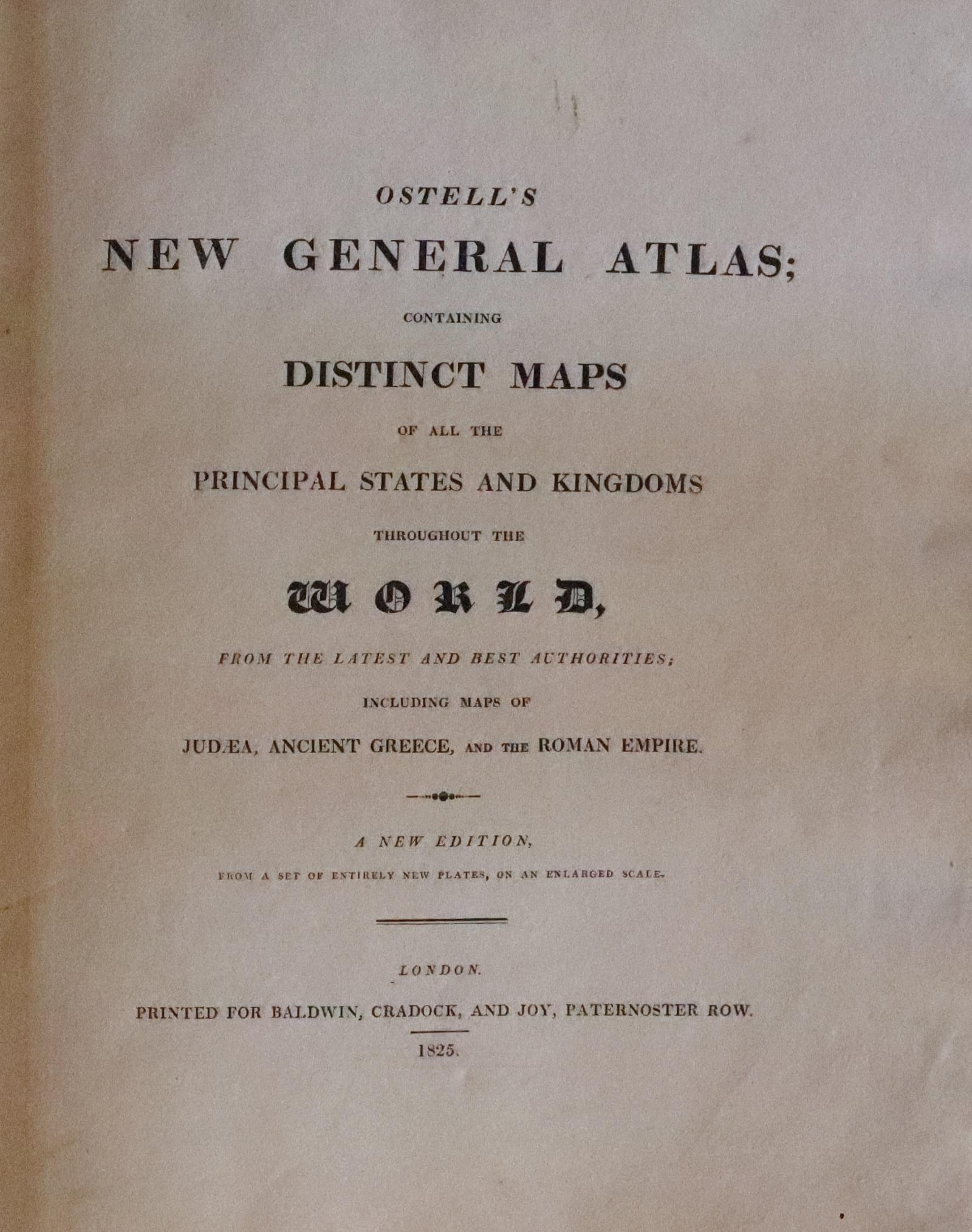 OSTELL’S NEW GENERAL ATLAS CONTAINING DISTINCE MAPS OF ALL THE PRINCIPAL STATES AND KINGDOMS THROUGHOUT THE WORLD FROM THE LATEST AUTHORITIES...A NEW EDITION FROM A SET OF ENTIRELY NEW PLATES, ON AN ENLARGED SCALE. PUBLISHED FOR BALDWIN, CRADDOCK AND JOY, PATERNOSTER ROW 1825