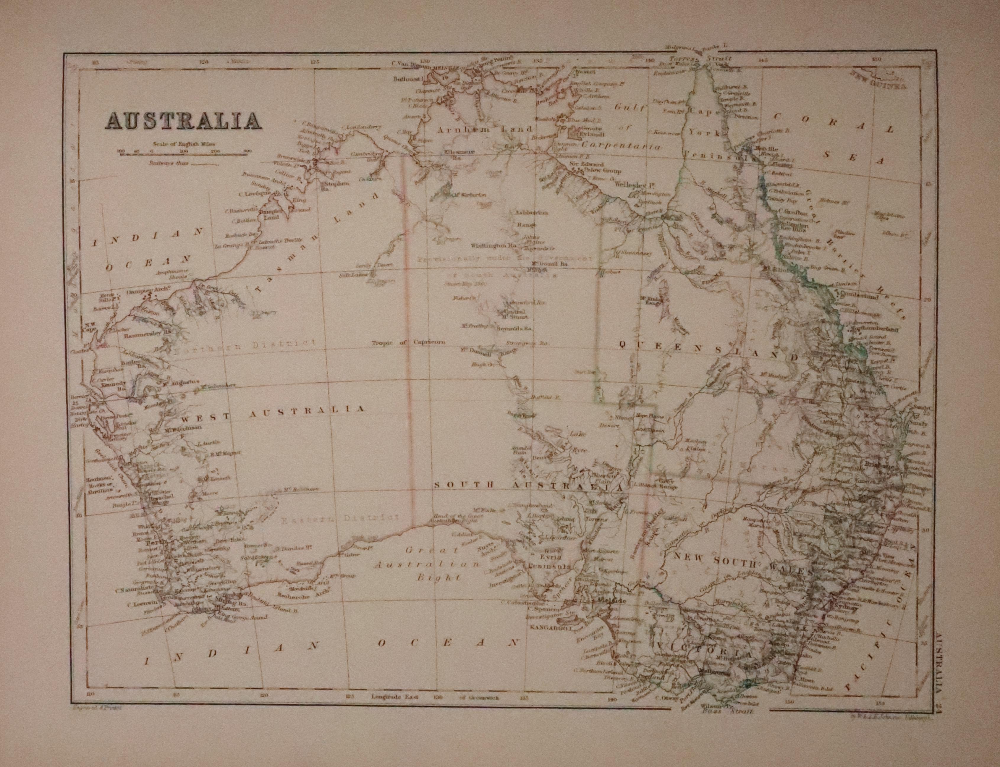 An interesting map of The World engraved by Alexander Findlay and published by Thomas Kelly at 53 Paternoster Row, London. Australia is shown with a partly mapped southern coast and North America is joined to Greenland. 15 3/4 x 9 1/2 inches. Uncoloured. Some light vertical creasing. Repair to the right hand blank margin.