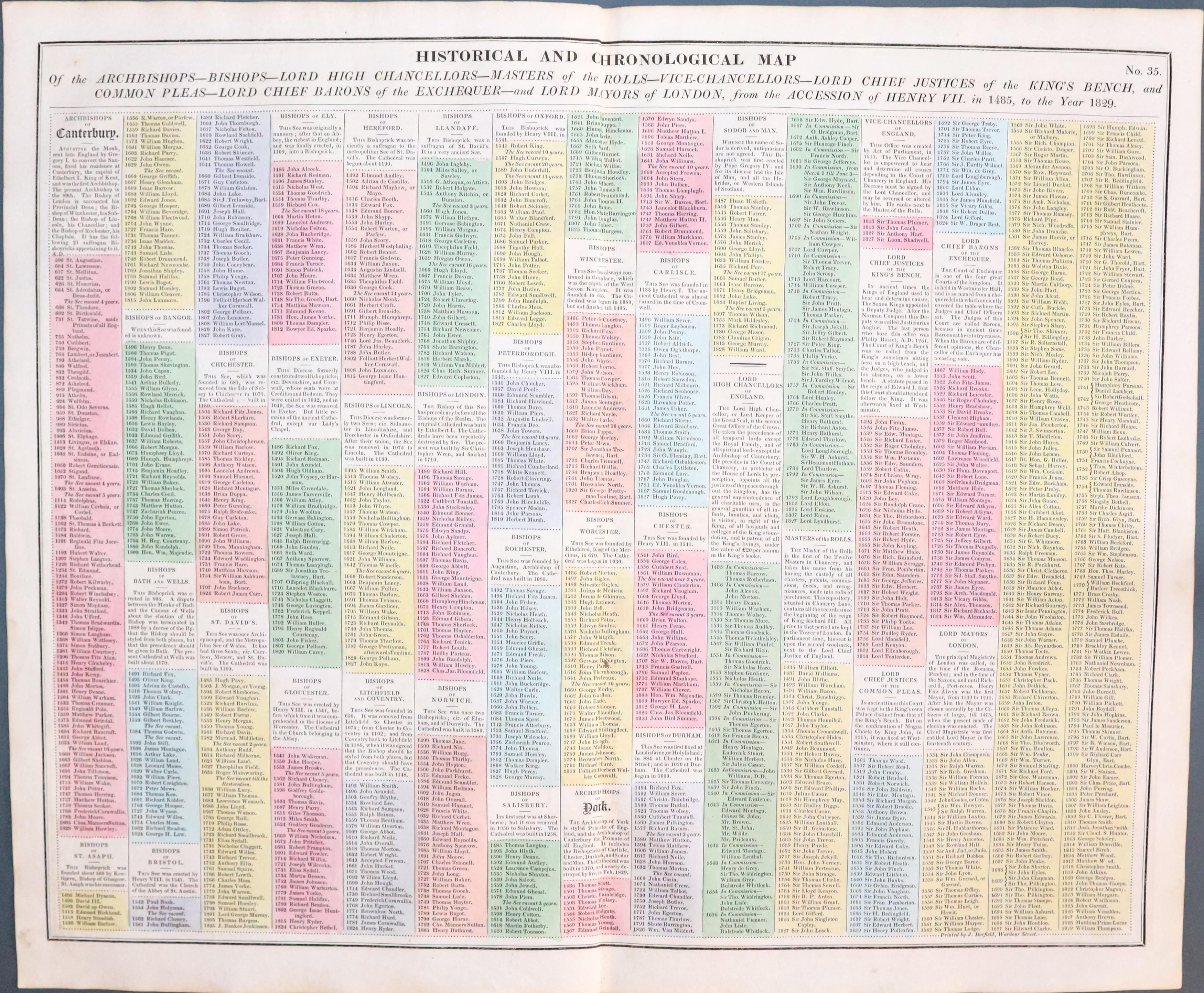 HISTORICAL AND CHRONOOGICAL MAP OF THE ARCHBISHOPS - BISHOPS - LORD HIGH CHANCELLORS - MASTERS OF THE ROLLS .....